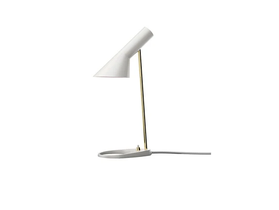 Die Tischleuchte AJ Mini hat mit einer Höhe von 43 Zentimetern die perfekte Größe für Fensterbank, Beistelltisch oder Nachttisch. Die weiß lackierte Innenseite reflektiert ein angenehmes, blendfreies Licht, während sich der Schirm leicht neigen lässt, was sie perfekt als Leselicht macht.