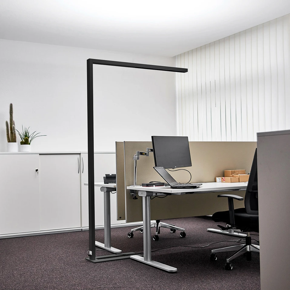Die Leuchten sind optimiert, um einen Standard-Schreibtisch mit einer Größe von 160 cm x 80 cm ideal, blendfrei und gleichmäßig auszuleuchten. Es empfiehlt sich daher, eine Leuchte pro Tisch einzusetzen.