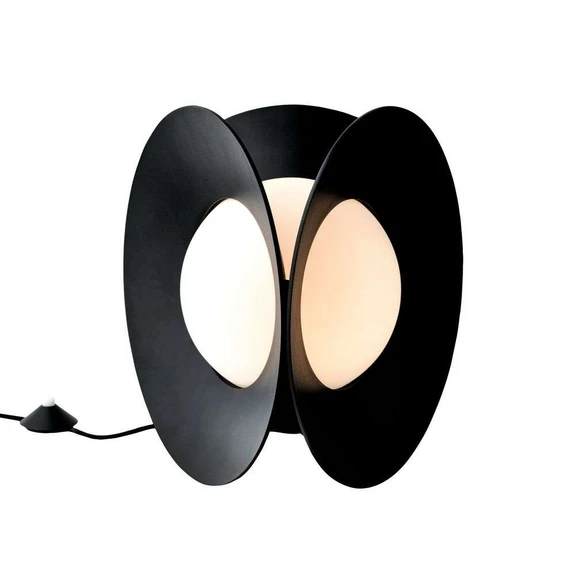 Die Leuchte besteht aus einer einzigen beleuchteten Glaskugel und drei kegelförmigen Aluminiumformen, die im ganzen Raum für Gleichgewicht und Atmosphäre sorgen. Die Helligkeit und die Farbtemperatur der Lampe können mit zwei Schaltern an der Leuchte eingestellt werden.