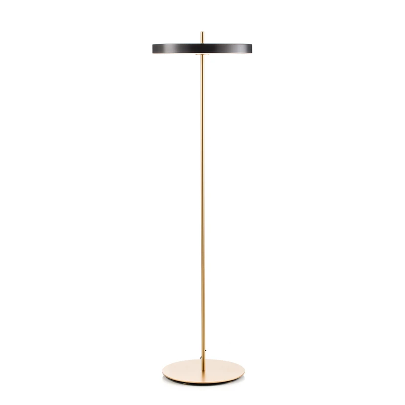 Asteria Stehleuchte Anthrazit ist eine schlichte, minimalistische und schöne Leuchte, die für die Zukunft entworfen wurde. Die Lampe verfügt über ein eingebautes LED-Panel und einen eingebauten Dimmer auf der Oberseite der Lampe. Umage hat es wieder getan und eine schöne Lampe entworfen, bei der Design, Technologie und Handwerkskunst berücksichtigt wurden.