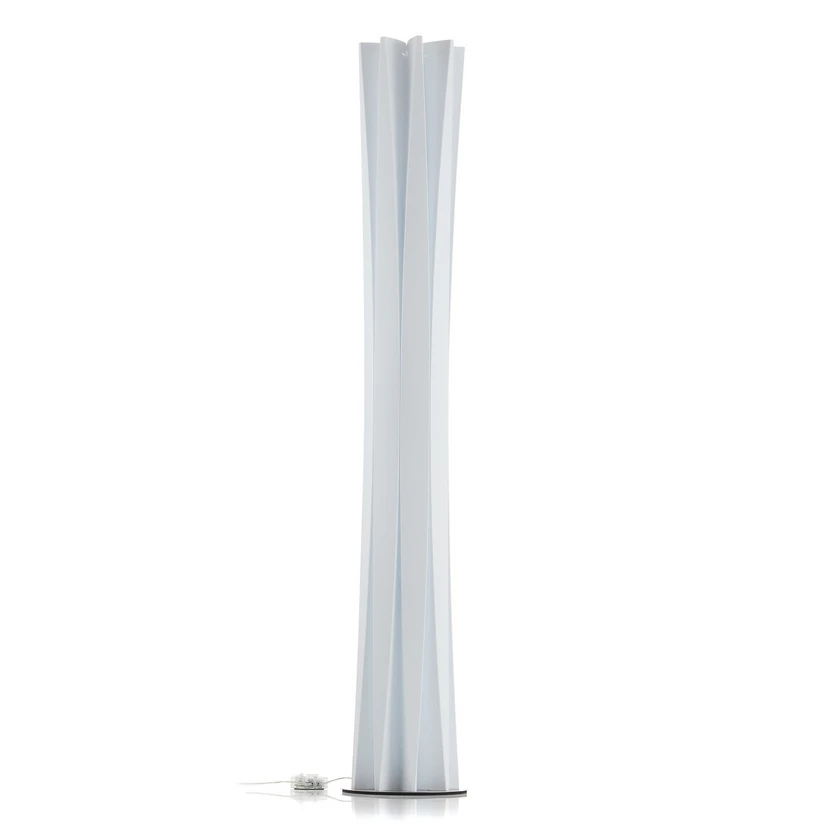Bach Stehleuchte XXL Weiß fällt sofort durch ihre imposante Säulenstruktur ins Auge, die der Leuchte ein monumentales Aussehen verleiht und sie zu einem echten Statement im Interieur macht. Die von Francesco Paretti für das italienische Unternehmen SLAMP entworfene Leuchte besteht aus Opalflex, das neben seinen wärmeregulierenden Eigenschaften und der angenehmen Lichtstreuung ein typisches Material für das italienische Leuchtenunternehmen ist. Lampenkörper und Schirm sind bei diesem Modell eine Einheit, die aus einem regulären Leuchtkörper besteht, der ein weiches Licht rund um die Lampe abgibt. Die Leuchtmittel im Inneren erzeugen schöne Lichtpunkte und ein abgestuftes Licht in den Zwischenräumen. Da die gesamte Leuchte leuchtet, wird das schöne Säulendesign bei jedem Einschalten der Leuchte hervorgehoben.