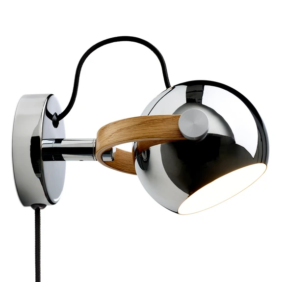Die DC Wandleuchte vereint zeitloses Design mit hochwertigen Materialien. Gefertigt aus robustem Metall und ergänzt durch geöltes Eichenholz, setzt sie stilvolle Akzente in jedem Raum. Das elegante Chrom-Finish verleiht der Leuchte eine moderne und zugleich edle Optik, die sich nahtlos in verschiedene Einrichtungsstile einfügt.