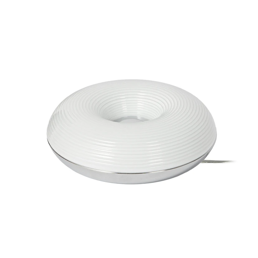 Bei Fjora wird stilvolles Design, flexible Anwendbarkeit und hochwertige Materialien miteinander vereint. Sie besteht aus weißem Glas und chromfarbenen Metall und erzeugt dank der Farbgebung ein helles, diffuses Licht. Ob an der Wand angebracht oder auf einen Tisch gestellt - durch ihre Donut-Optik setzt Fjora bewusste Akzente.