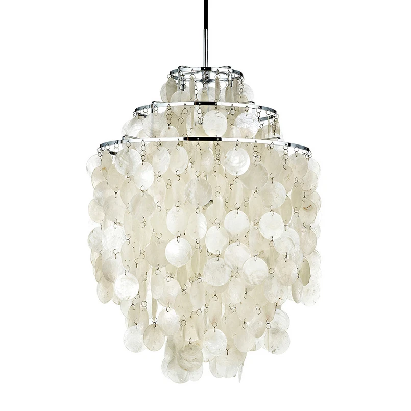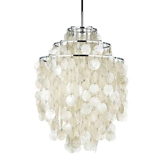 Die VERPAN Pendelleuchte Fun 1DM vereint die edlen Materialien Perlmutt und Metall zu einem einzigartigen Designobjekt, das jedem Raum eine besondere Note verleiht. Die Kombination aus perlmuttfarbenen Scheiben und chromfarbenen Elementen schafft ein faszinierendes Spiel aus Licht und Schatten, das sowohl im Wohnzimmer als auch im Esszimmer für eine stimmungsvolle Atmosphäre sorgt.