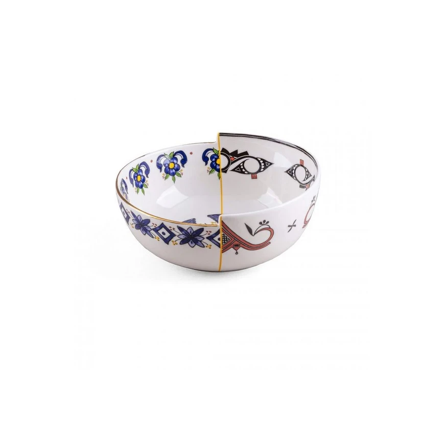 Die Hybrid-Tiwanaku Schale aus Porzellan ist Teil der einzigartigen und originellen Serie des italienischen Designers Seletti, der für seinen Blick über den Tellerrand bekannt ist. Die skurrilen Porzellanstücke der Serie heben sich von gewöhnlichen Porzellansets ab und verleihen jedem Einrichtungsstil eine besondere Note, indem sie auffällige und bewunderte Stücke schaffen. Die Serie Hybrid besteht aus Vasen und Schalen aus wunderschönem Bone China-Porzellan mit verschiedenen Mustern und Ausdrucksformen, so dass Sie genau den Look erhalten, der am besten zu Ihrem Stil und Geschmack passt.