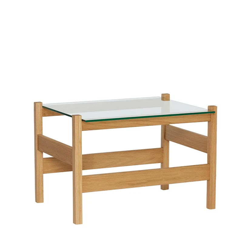 Der Ledge Beistelltisch Natur von Hübsch ist die perfekte Wahl für alle, die einen Hauch von Eleganz in ihr Zuhause bringen möchten. Dieser Beistelltisch, auch Tisch genannt, ist eine harmonische Kombination aus natürlichem Eichenholz und einer klaren Glasplatte, die zusammen ein stilvolles und funktionelles Möbelstück ergeben. Mit den Maßen 66x52xh45cm passt er perfekt neben Ihren Lieblingssessel oder als Couchtisch in Ihr Wohnzimmer.