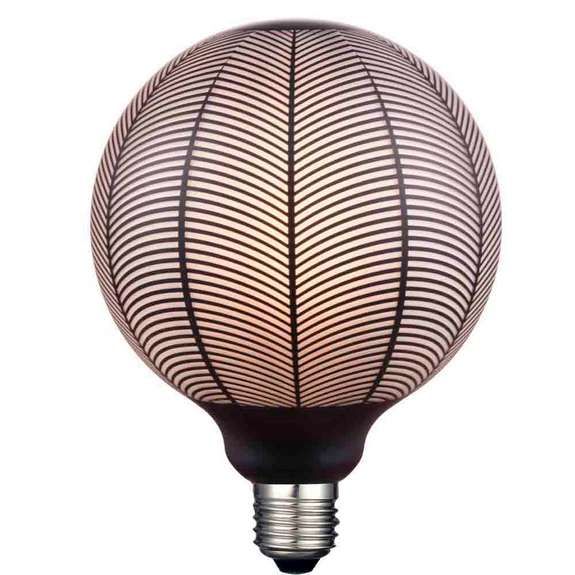 Leuchtmittel LED 6W (600lm) Leaves 3-step E27 hat ein wirklich einzigartiges Design mit einem schönen Erscheinungsbild, egal ob sie ein- oder ausgeschaltet ist. Das feine Glas lässt, wenn die Lampe eingeschaltet ist, trotz des Grafikdrucks viel Licht in die Umgebung. Verwenden Sie die Birne für eine schöne und gemütliche Beleuchtung zu Hause, in Restaurants oder Cafés. Erstellen Sie ganz einfach Ihre eigene dekorative "Leuchte", indem Sie die Birne mit einem Kabel mit Fassung von der Decke hängen lassen.