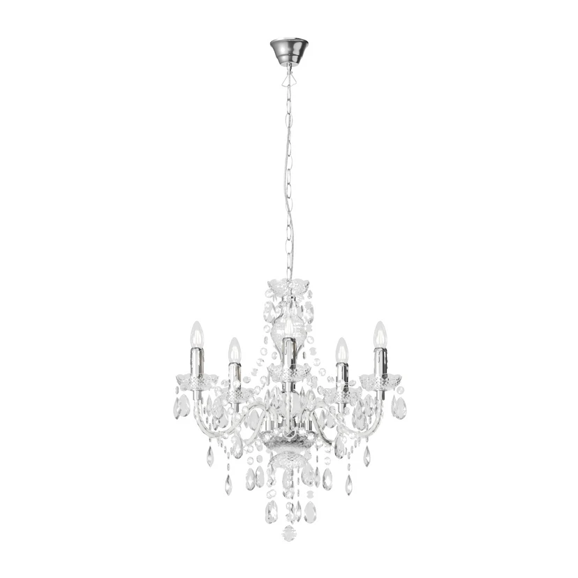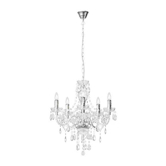 Der Kronleuchter Merida ist einer mit solchen Maßen, dass man ihn auch gut in private Wohnräume integrieren kann. Der Behang besteht aus klarem Acryl mit geschliffener Oberfläche und erzeugt jenes wohlbekannte Funkeln, sobald er in Berührung mit Licht kommt und die Lichtstrahlen mit glamouröser Wirkung reflektieren kann. Daher ist Merida nicht zuletzt im Esszimmer eine nachhaltig wirkungsvolle Bereicherung, die das Ambiente gleich einige Nuancen edler erscheinen lässt.