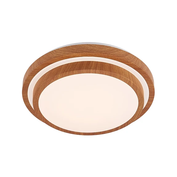 Runde LED-Deckenleuchte Vaako mit Rahmen in Holzoptik