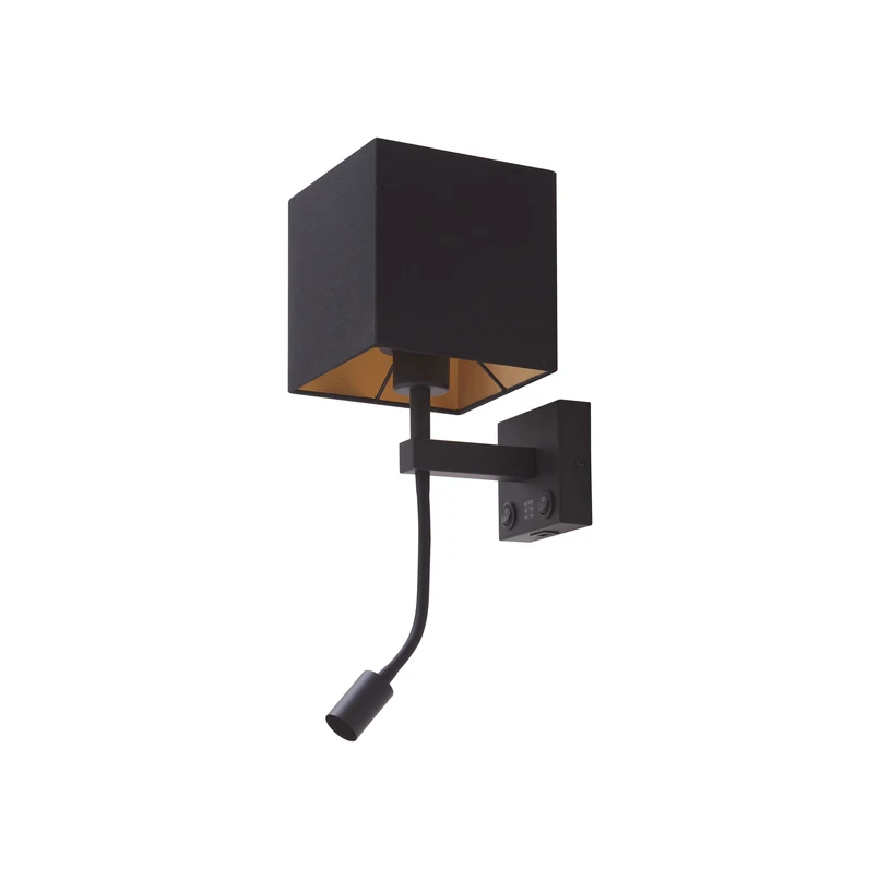 Wandleuchte Thorid mit USB-Input und eckigem Lampenschirm aus Textil