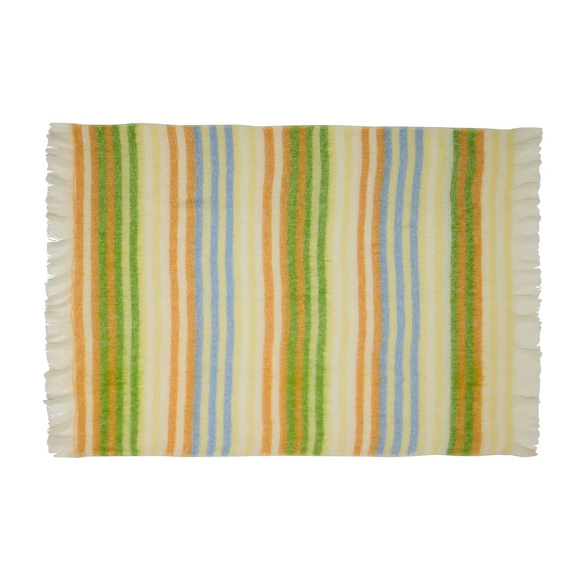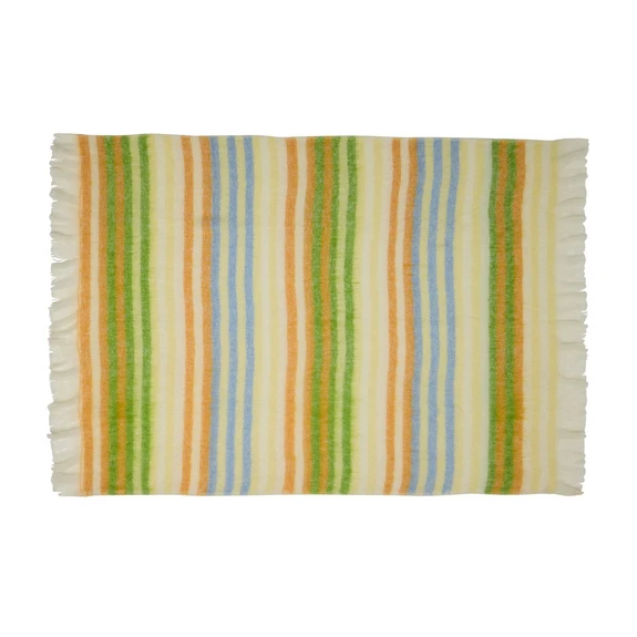 Loom Decke, grün/gelb gestreift, 140 x 200cm - HÜBSCH