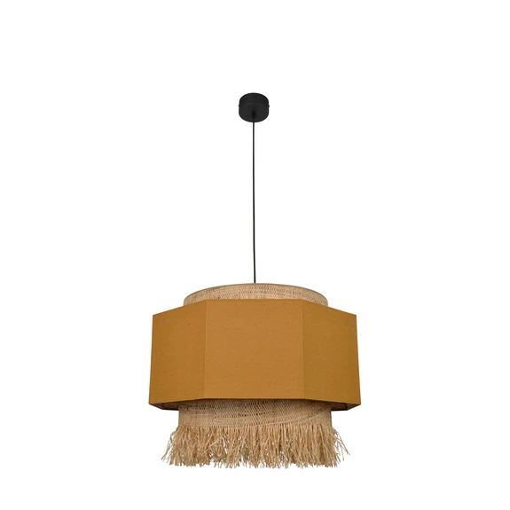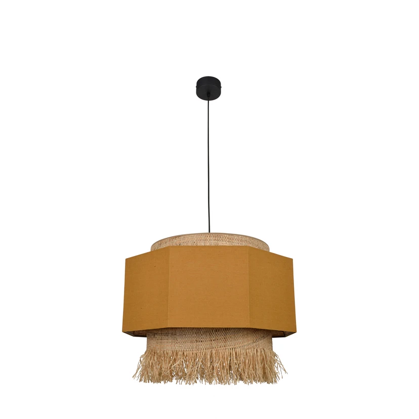 Die MARKET SET Marrakech Hängeleuchte vereint außergewöhnliches Design mit natürlichen Materialien wie Leinentextil, Bananenstaudefaser und Palmfaser (Raffia). Die harmonische Kombination aus curry-gelben und naturbeigen Farbtönen verleiht jedem Raum eine warme und einladende Atmosphäre. Gefertigt in Europa, überzeugt die Leuchte durch hochwertige Verarbeitung und eine einzigartige Optik, die sich perfekt in Wohn- und Esszimmer integrieren lässt.