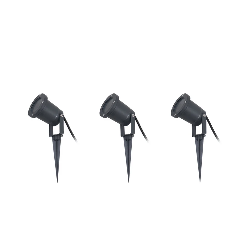 Das 3er-Set der Erdspießstrahler Nielas überzeugt mit einer klaren Formsprache und einer modernen Farbgebung in Anthrazit. Gefertigt aus robustem Eisen und Glas, bietet es eine langlebige und stilvolle Beleuchtungslösung. Dank der Schutzart IP54 ist das Set optimal für den Einsatz auf der Terrasse geeignet und trotzt zuverlässig Staub und Spritzwasser.