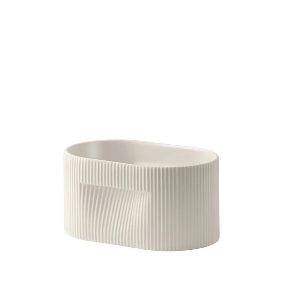 Das Ridge Pflanzgefäß H13 Off-White von Muuto ist die perfekte Ergänzung für Ihr Zuhause, wenn Sie die Natur stilvoll ins Haus holen möchten. Dieses elegante Pflanzgefäß aus Steingut verbindet Funktionalität mit einem skulpturalen Ausdruck, der von der beliebten Ridge-Vase inspiriert ist. Mit seiner matten Oberfläche, dem gerippten Rand und der glasierten Innenseite bietet das Ridge Pflanzgefäß eine organische und tiefe Ästhetik, die zu jeder Einrichtung passt. Die diskreten Griffe an den Seiten machen es einfach, ihn in der Wohnung zu bewegen und grüne Oasen auf Fensterbänken, Schreibtischen, Regalen, in der Küche oder im Bad zu schaffen. Die wollweiße Farbe verleiht ihm einen zeitlosen Look, der sowohl zu kleinen als auch zu mittelgroßen Pflanzen, Kräutern oder Sukkulenten passt. Ganz gleich, ob Sie ihn im Wohnzimmer, in einer Ecke oder im Eingangsbereich aufstellen, der Ridge Planter wird Ihrem Raum einen Hauch von Eleganz und Natur verleihen..