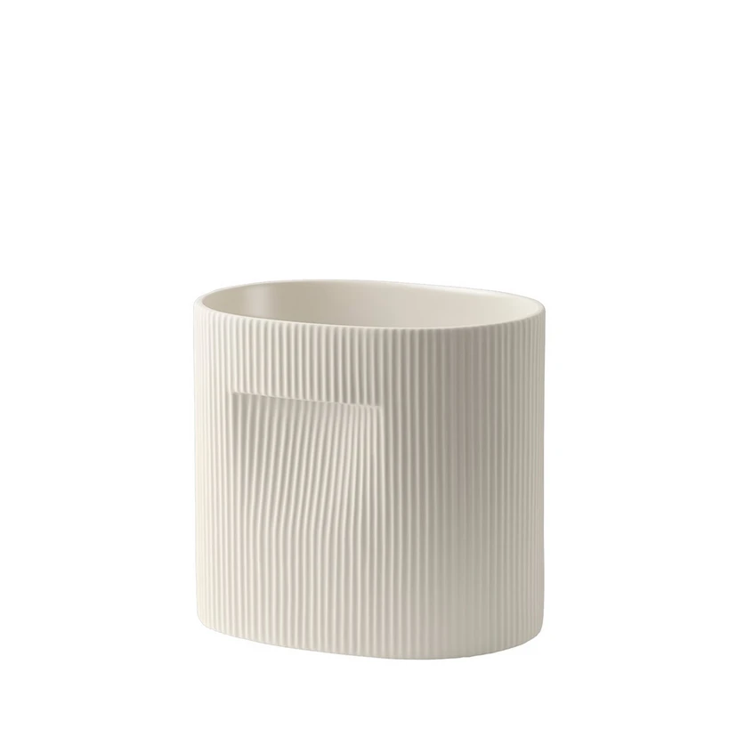 Das Ridge Pflanzgefäß H24 Off-White von Muuto ist die perfekte Ergänzung für Ihr Zuhause, wenn Sie die Natur stilvoll ins Haus holen möchten. Dieses elegante Pflanzgefäß aus Steingut kombiniert Funktionalität mit einem skulpturalen Ausdruck, der von der beliebten Ridge-Vase inspiriert ist. Mit seiner mattweißen Oberfläche und dem gerippten Rand schafft er eine organische und tiefe Ästhetik, die zu jeder Einrichtung passt. Die glasierte Innenseite sorgt dafür, dass Ihre Pflanzen gut gedeihen, während die diskreten Griffe an den Seiten den Transport des Pflanzgefäßes in der Wohnung erleichtern. Der Ridge Planter ist ideal für kleine bis mittelgroße Pflanzen, Kräuter oder Sukkulenten und passt perfekt auf Fensterbänke, Schreibtische, Regale, in Küchen und Bäder. Egal, ob Sie ihn im Wohnzimmer, in einer Ecke oder im Eingangsbereich aufstellen, er wird einen Hauch von Eleganz und Natur vermitteln.