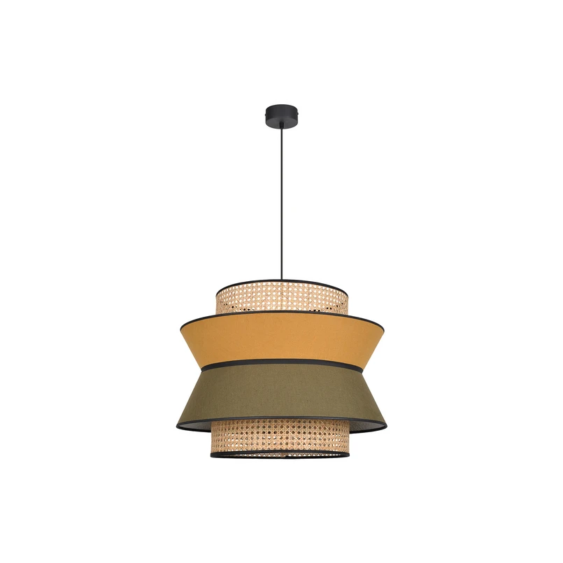 Die MARKET SET Singapour XL Hängeleuchte vereint stilvolles Design mit hochwertigen Materialien wie Textil, Rattan und Metall. Die harmonische Farbkombination aus khaki, curry und schwarz verleiht jedem Raum eine warme und einladende Atmosphäre. Die Leuchte wurde mit einem besonderen Augenmerk auf Ästhetik und Funktionalität entworfen und ist ein Blickfang, der sich ideal für Wohn- und Essbereiche eignet.
