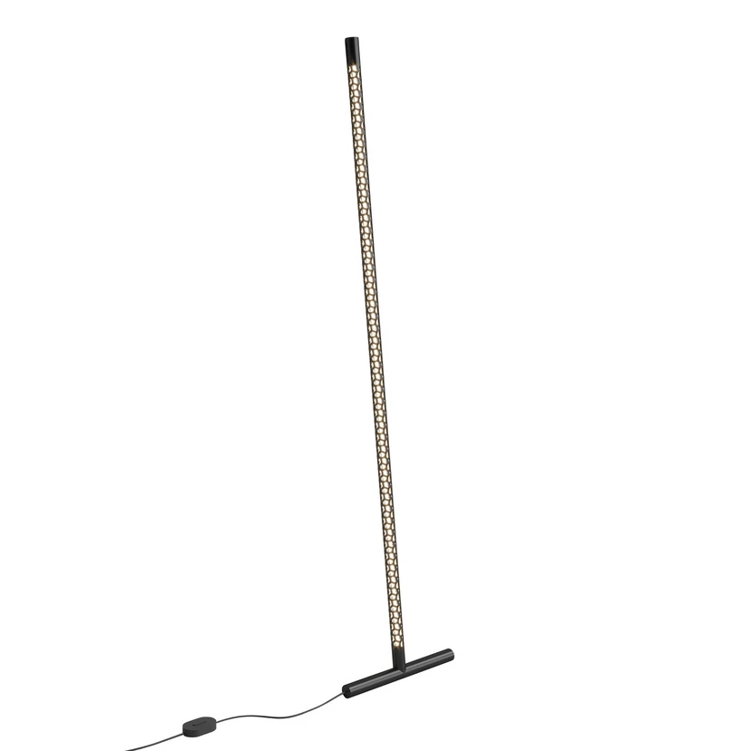 Squiggle F1 Stehleuchte 2700K Matt Black von Rotaliana ist eine einzigartige Stehleuchte, die Kunst und Funktionalität in Ihrem Zuhause vereint. Inspiriert von Lucio Fontanas Neon-Struktur für die 9. Mailänder Triennale, präsentiert diese Leuchte ein faszinierendes Design mit einem hängenden, röhrenförmigen Exoskelett, das einen bis zu 6 Meter langen LED-Streifen verbirgt. Die schwarze Metallstruktur ist mit einer Reihe von unregelmäßigen sechseckigen Löchern perforiert, die eine dynamische Beleuchtung und Formen wie gebrochene Kurven, das Unendlichkeitssymbol und konzentrische Ringe in verschiedenen Größen erzeugen. Mit einer Höhe von 193 cm und einer Breite von 43 cm ist diese Leuchte eine beeindruckende Ergänzung für jeden Raum, wo sie sowohl als praktische Lichtquelle als auch als künstlerisches Statement dienen kann. Die mattschwarze Oberfläche verleiht ihr einen modernen Touch, der sich perfekt in jede Einrichtung einfügt.