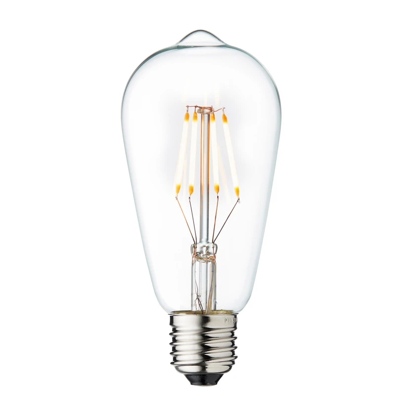 Das LED-Leuchtmittel Vintage mit E27-Sockel überzeugt durch seine schöne Rustika-Form, mit seiner besonders warmen Lichtfarbe und mit seinen sichtbaren Filamenten. So eignet es sich besonders für offen gestaltete Leuchten und ist darüber hinaus auch dimmbar.