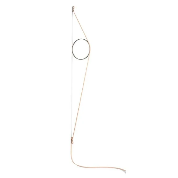 Der Zirkel wird an der Wand mit Hilfe eines Kontrastfarben Bandes, welches aus einem Gummimaterial besteht und gleichzeitig auch die Stromversorgung ist, befestigt. Das Kabel der Lampe ist 2,5 Meter lang. Das Band wird an der Wand mit einem Beschlag, dass das gleiche Finish wie der Zirkel hat, befestigt. Der Zirkel ist aus Aluminium.