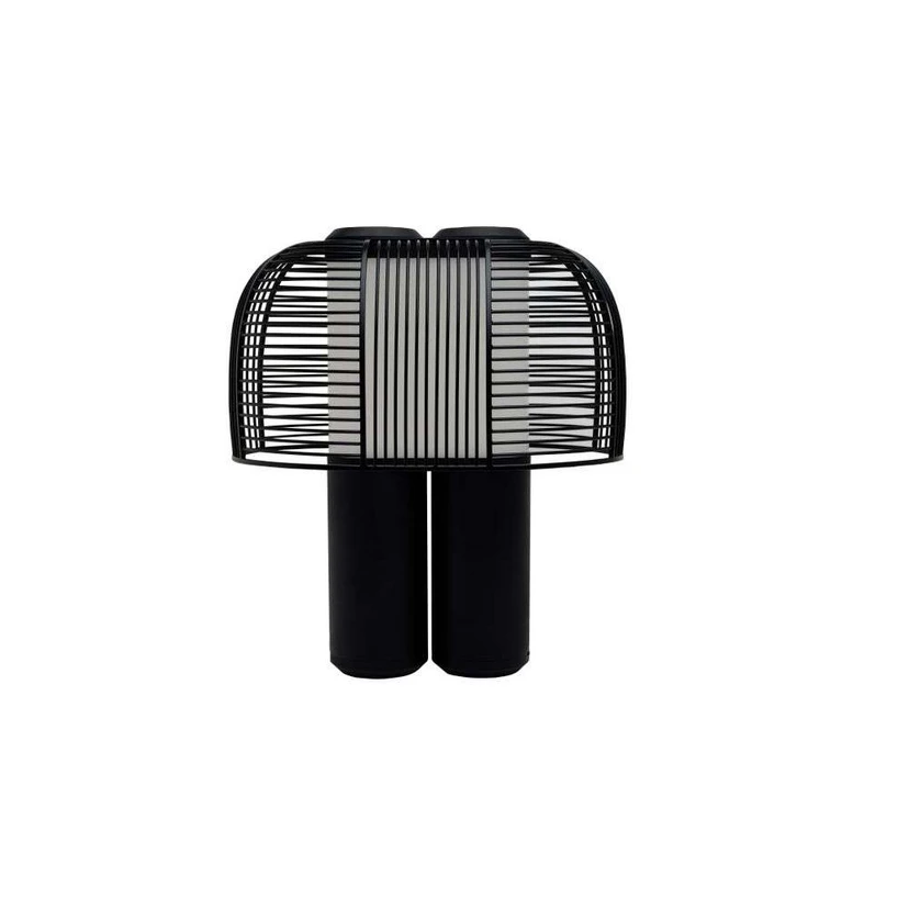 Yasuke Tischleuchte Schwarz von der französischen Marke DCW éditions ist gerade aus der Zukunft angekommen. Die beiden Beine setzen sich elegant über dem leuchtenden ovalen Top fort und gipfeln in einem Schirm, der sich durch dünne Linien auszeichnet, die am Lampenkörper hinuntergleiten und vor dem Leuchtmittel zu einer schwarz gemusterten Silhouette werden. Die Beine verlaufen durch das leuchtende Zentrum und tauchen oben auf der Leuchte wieder auf, wo sie als Dimmer dienen. Mit dem einen lässt sich die Temperatur des Lichts einstellen, mit dem anderen die Helligkeit.